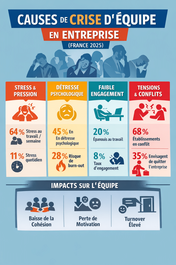 - Percevez-vous des signes de tension, de désengagement ou de communication rompue au sein de votre équipe, au-delà des défis habituels ?
