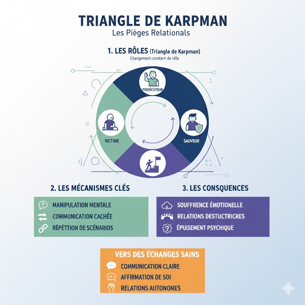 L’auto-sabotage dans les relations affecte également Marc. Son stress professionnel génère un auto-sabotage amoureux : il devient irritable avec sa conjointe, créant des conflits qui justifient sa croyance selon laquelle « il ne mérite pas le bonheur ».