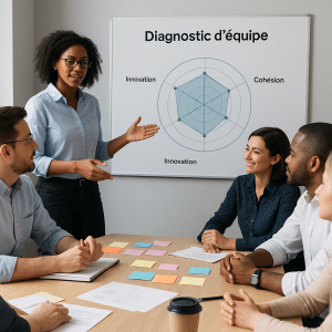 - Quatre stades de maturité d’équipe guident l’évolution : expertise, cohésion, projet fédérateur, intelligence collective.