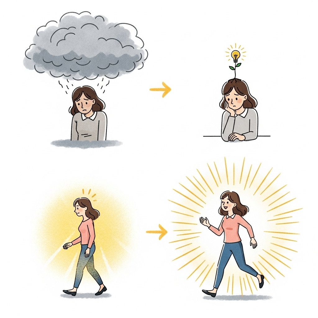 - Sport : « Je dois faire du sport » ⇨ « Je choisis de bouger pour ressentir plus d’énergie et de joie. »